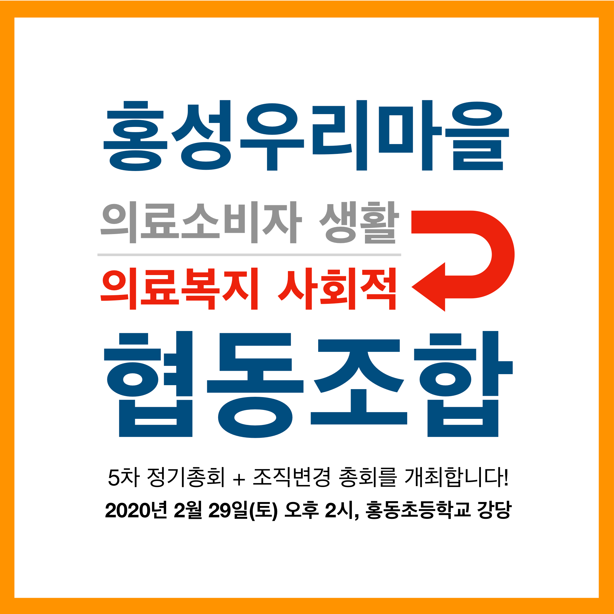 2020년 2월 29일 오후 2시, 홍동초등학교 강당에서 의료복지사회적협동조합으로 조직변경 총회를 개최합니다.