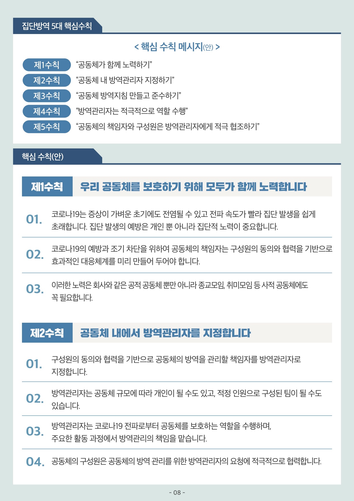 제5수칙) "공동체의 책임자와 구성원은 방역관리자에게 적극 협조하기"