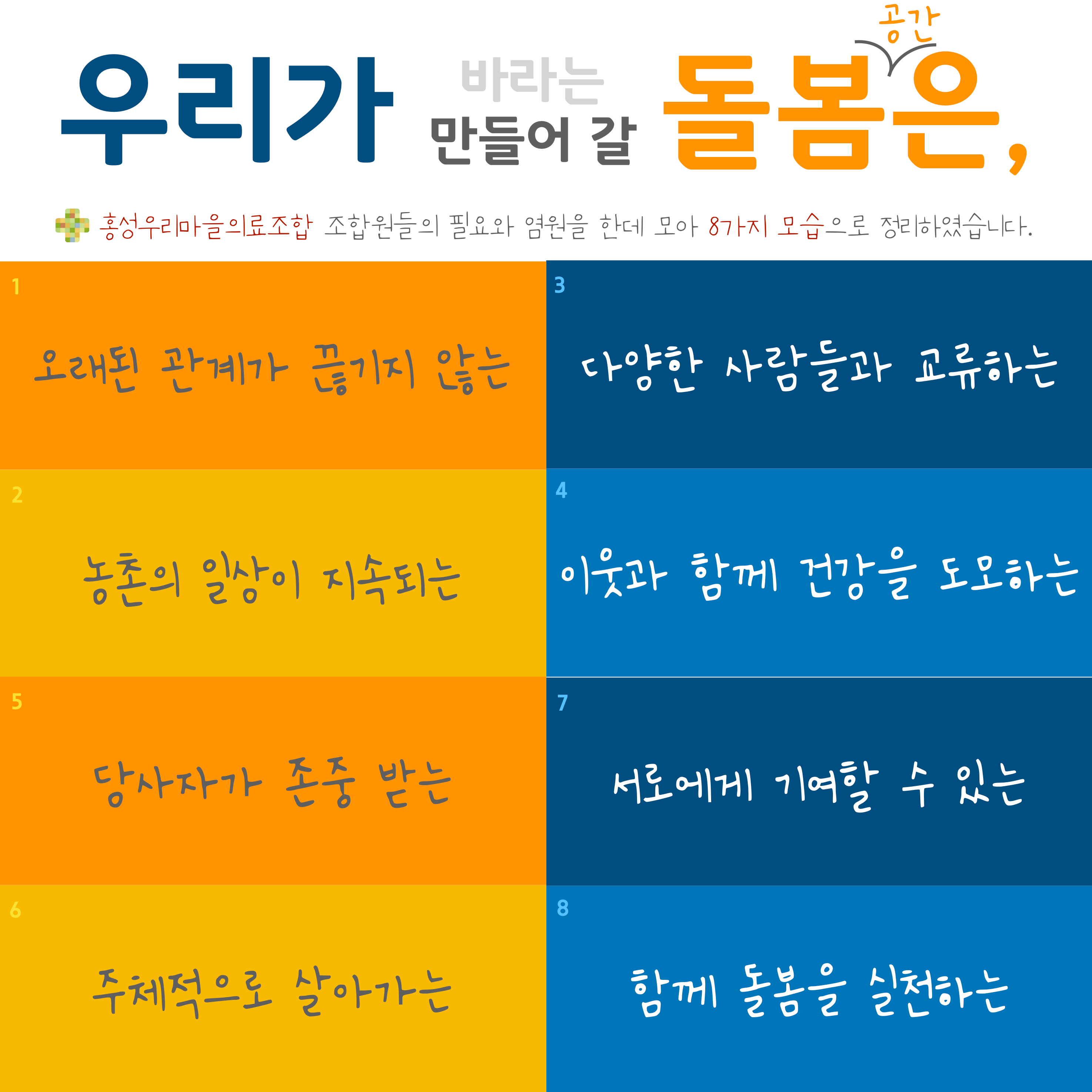 🔍 돌봄(공간)에 대한 조합원의 필요와 염원을 한데 모아 8가지 모습으로 정리하였습니다.