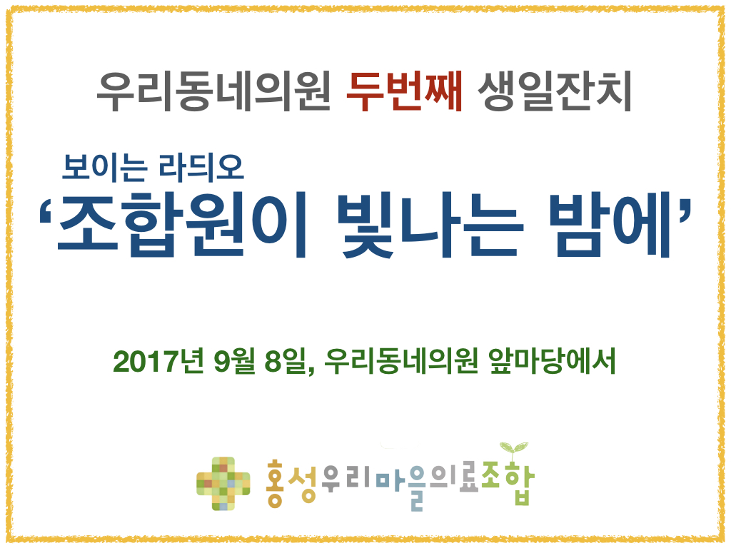 2017.09.08 두번째 생일잔치, 우리동네의원 앞마당에서, 보이는 라듸오 <조합원이 빛나는 밤에>