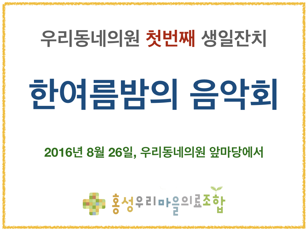 2016.08.26 첫번째 생일잔치, 우리동네의원 앞마당에서, <한여름밤의 음악회>