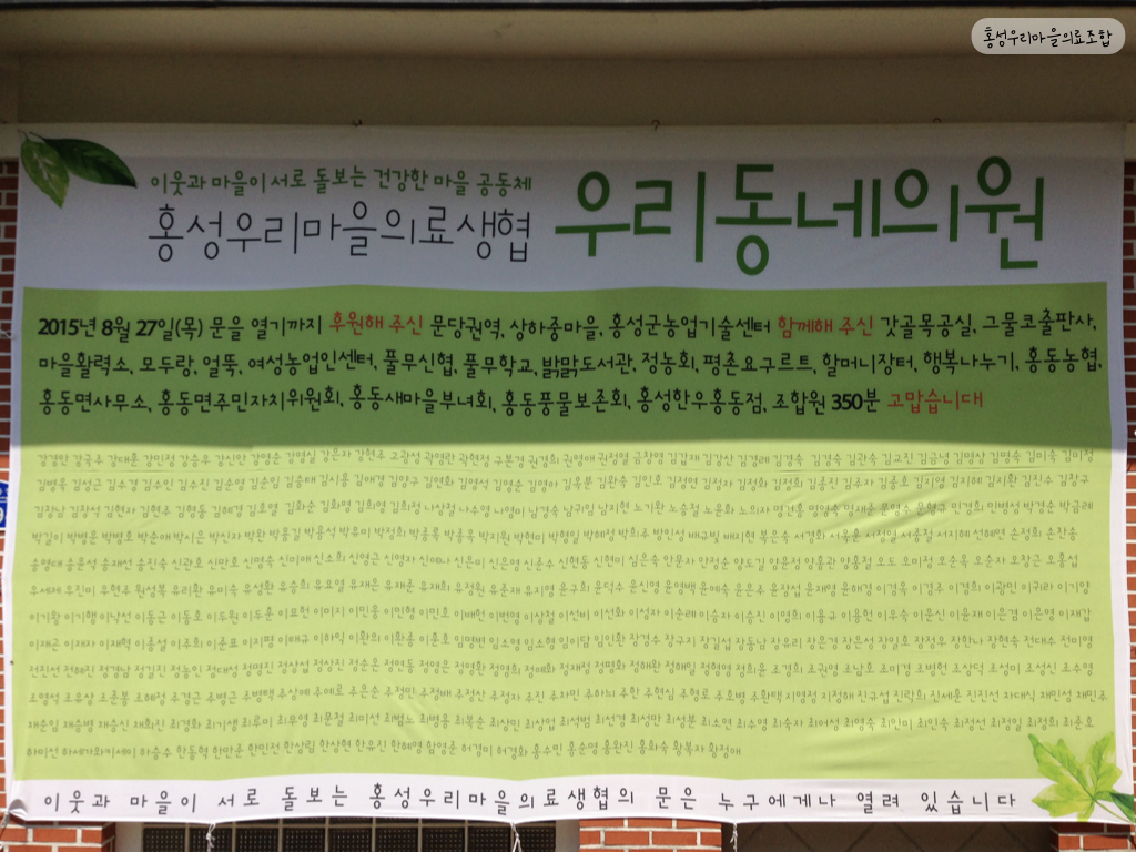 홍성우리마을의료조합은 2015년 5월 9일에 창립하였고,