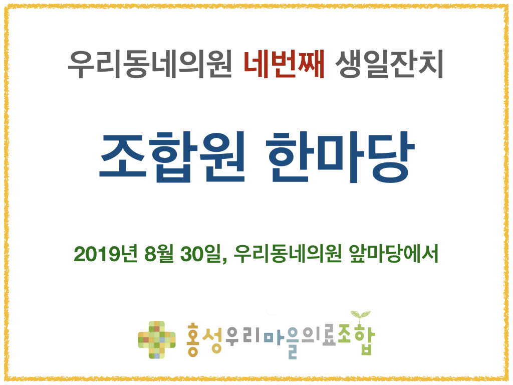 2019.08.30 네번째 생일잔치, 우리동네의원 앞마당에서, <조합원 한마당>