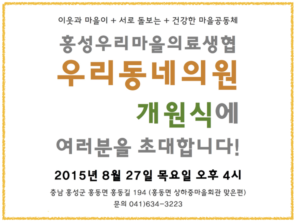 우리동네의원은 같은 해 2015년 8월 27일에 개원하였습니다.