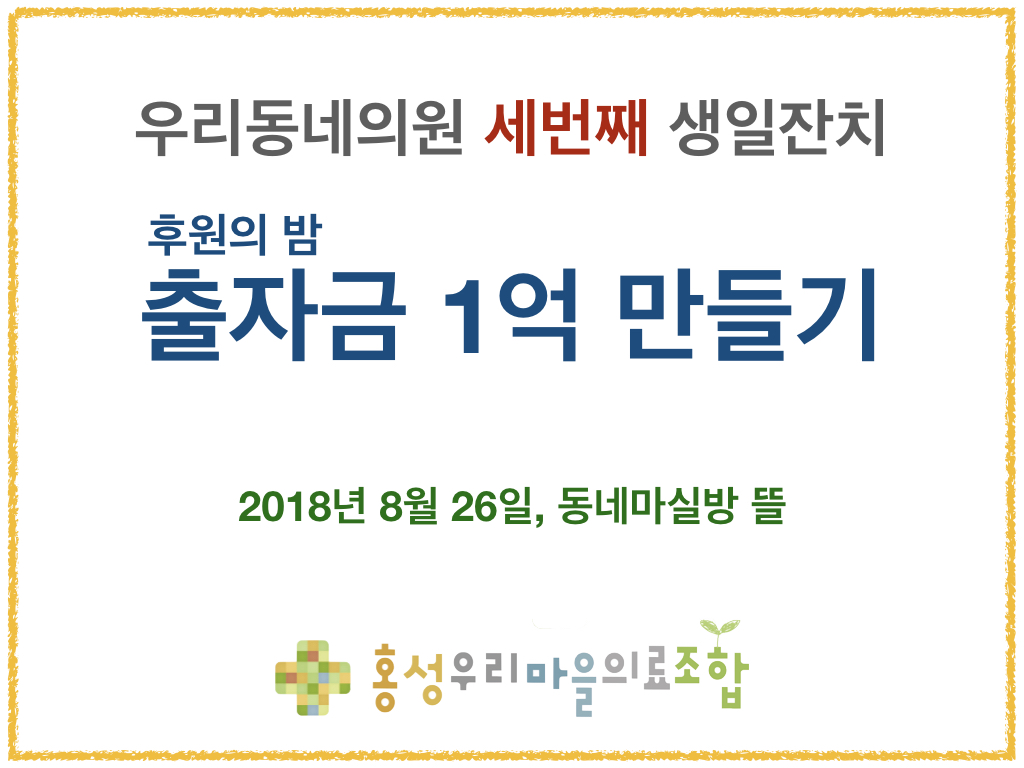 2018.08.26 세번째 생일잔치, 동네마실방 뜰에서, <출자금 1억만들기 후원의 밤>