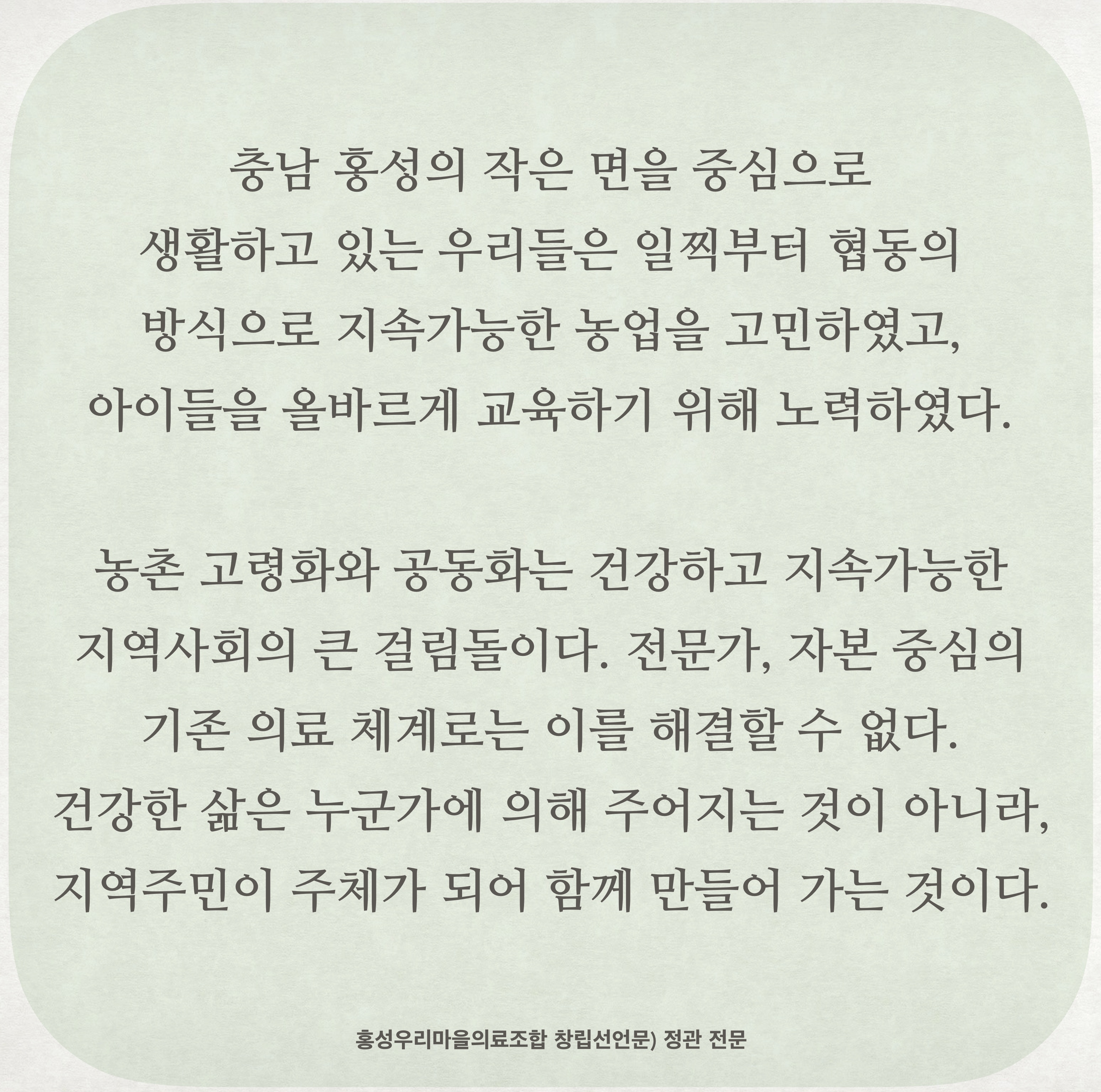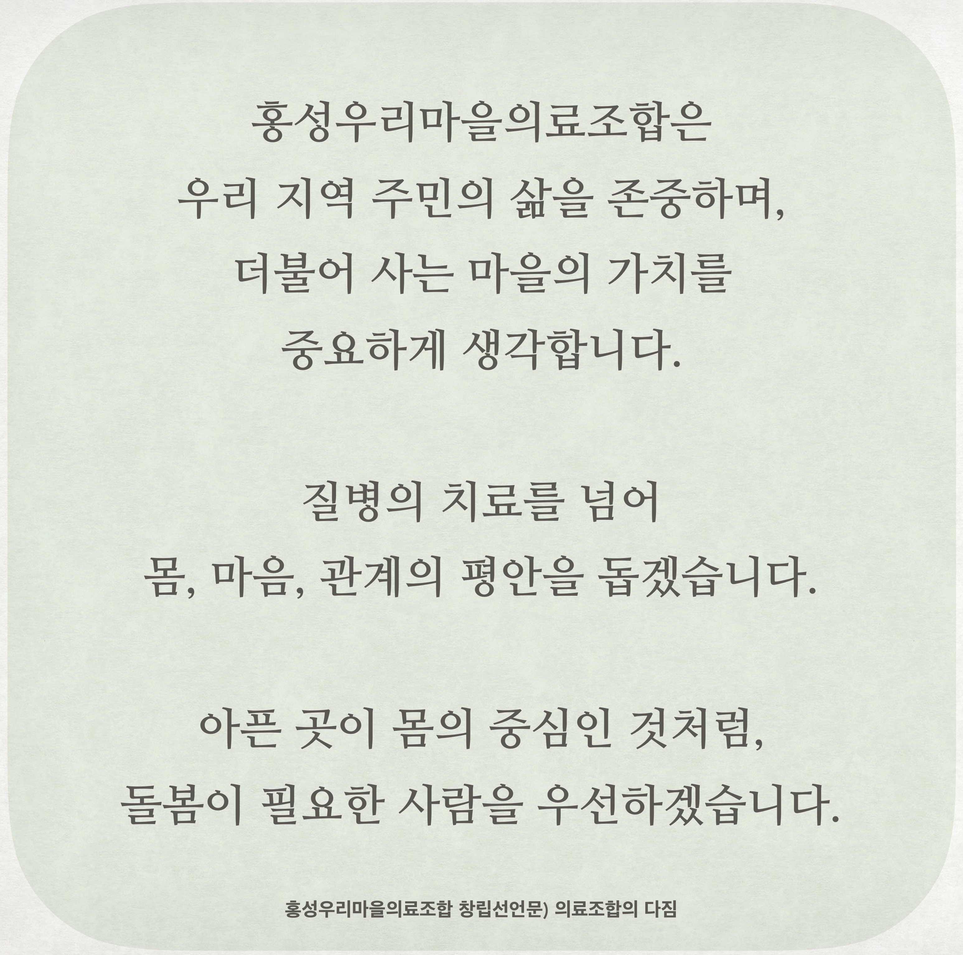 덕불고필유린. 채승병 초대 이사장님이 좋아하셔서 종종 읊어주시던 문장입니다. 새해 아침에 어느 고전연구자의 편지를 읽다가 이 문장을 다시 만났지요. 의료조합의 곧은 마음씨는 무엇일까, 바뀌지 말아야 하는 마음은 무엇일까를 생각하다가 우리 조합의 창립선언문이 생각났습니다. 새해를 맞이하는 기념으로, 우리 조합의 창립선언문을 한번씩 함께 읽어보면 좋겠어요.