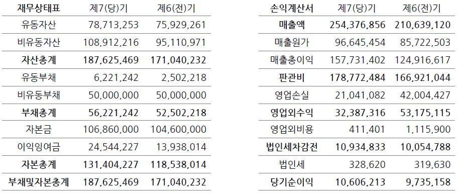 2022년 예산(안)과 함께 18페이지에 있습니다. 7기 재무상태표와 손익계산서는 10페이지에 있습니다.