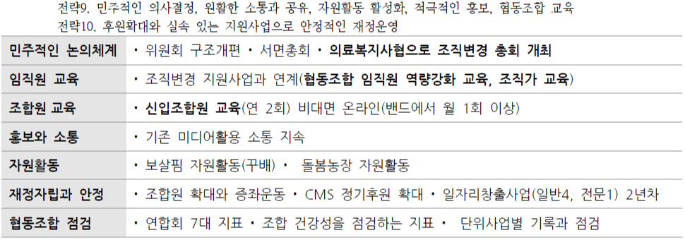 져야 합니다. 조합원의 역량을 키우는 교육 활동과 조합원의 역량을 모아내는 조직 활동을 시도하여, 건강한 협동