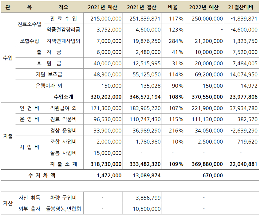 (8) 2021 예산대비 결산(안), 2022년 예산(안)