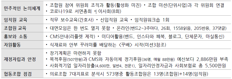미션5 건강한 협동조합 만들기, 2021년 실천