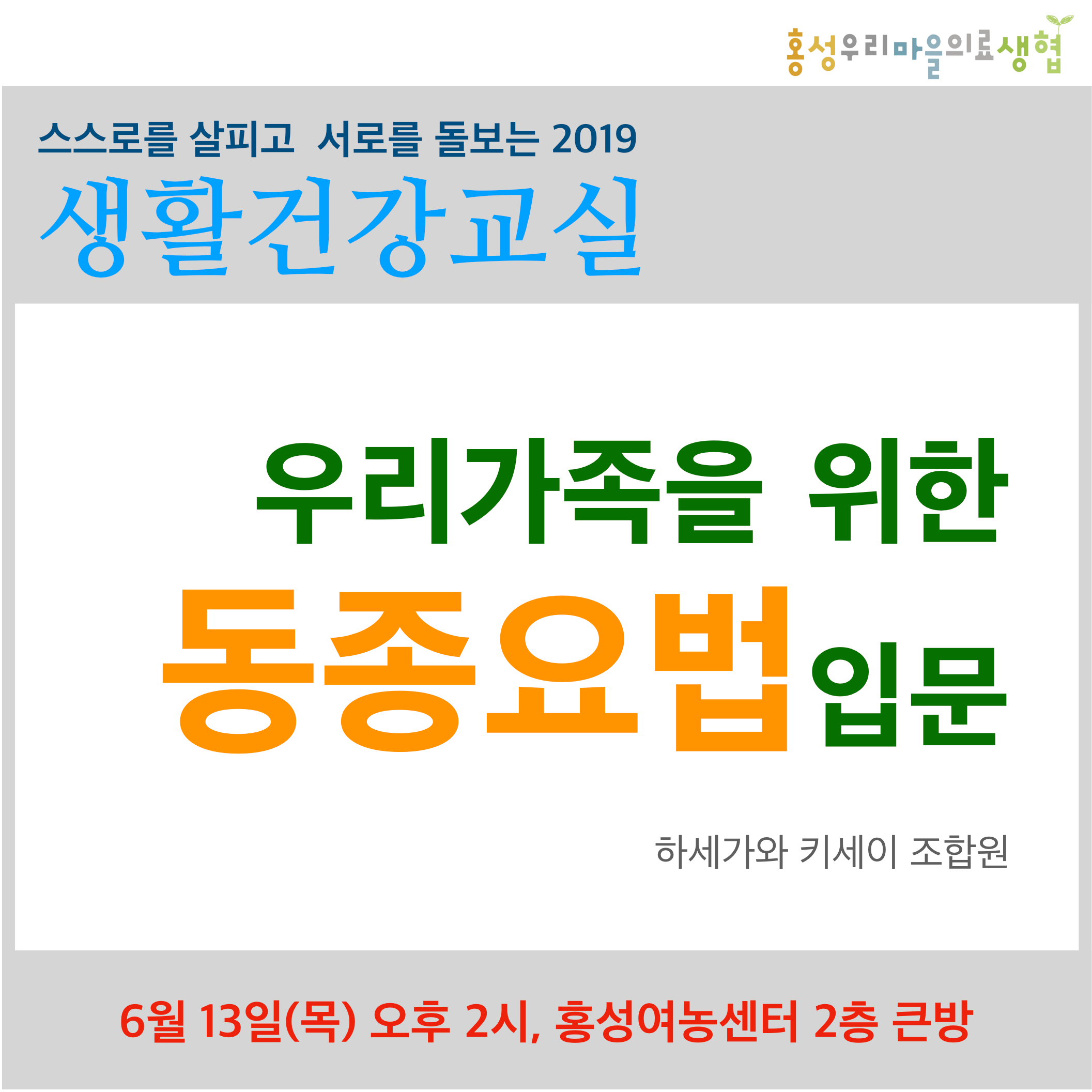 + 생활건강교실 강의일정: 4월 11일 저녁 7시, 여농센터 2층