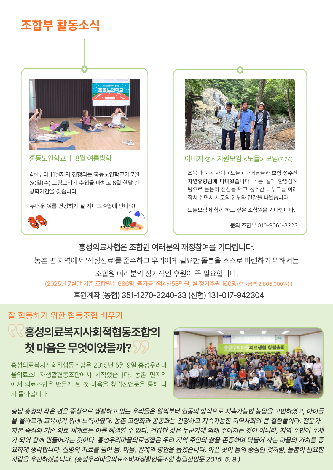 | 홍성의료복지사회적협동조합으로 새롭게 시작합니다. (0) | 2022.08.29 |
