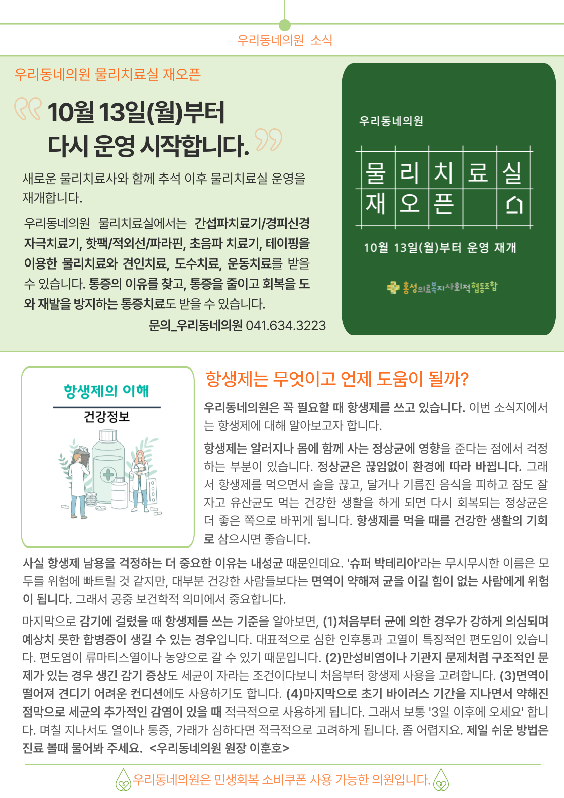 ✅근무장소_우리동네의원 물리치료실(홍성군 홍동면 홍장북로 8-4)