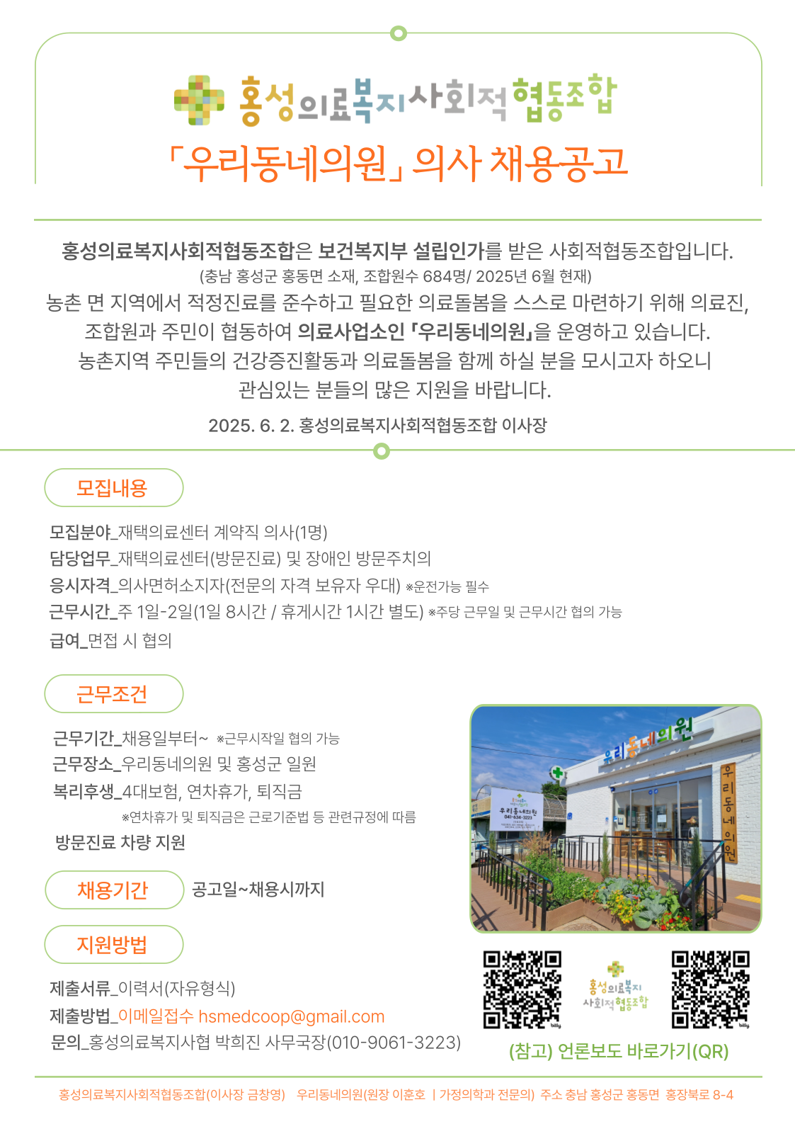| 재택의료센터 계약직 의사 채용공고(~채용 시까지) (0) | 2025.06.04 |