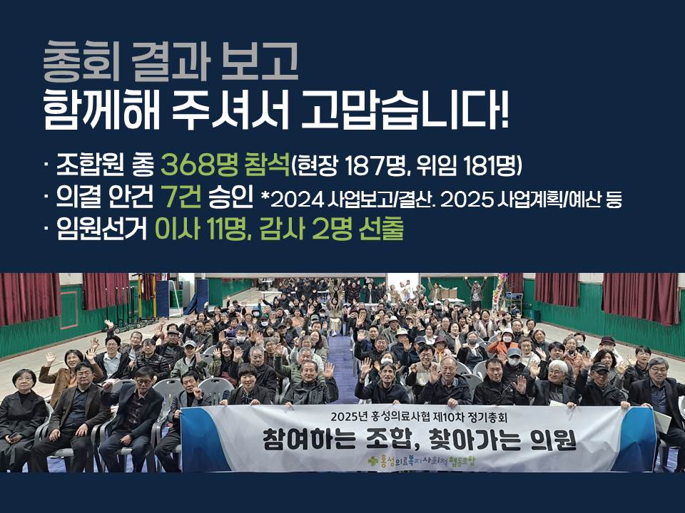 | 2023년 홍성의료사협 제8회 정기총회 공고 (자료집) (0) | 2023.03.09 |
